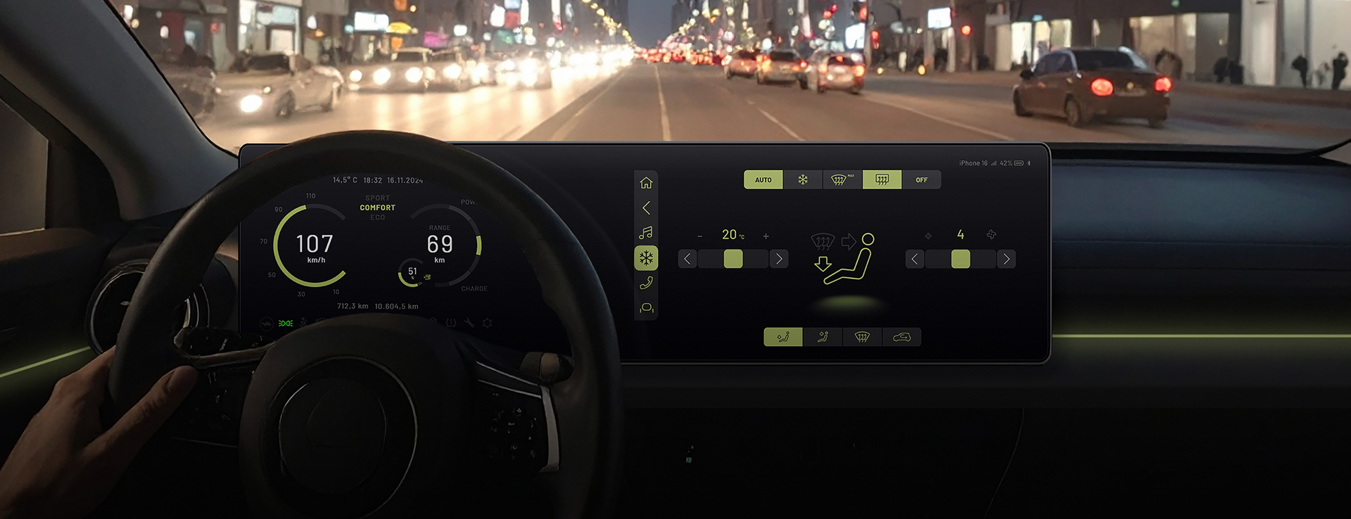 In der heutigen digitalen Welt spielen moderne User-Interfaces (UI) eine entscheidende Rolle, insbesondere im Bereich der Infotainmentsysteme und digitalen Kombiinstrumente in Fahrzeugen. Diese Systeme müssen nicht nur funktional, sondern auch intuitiv und ansprechend gestaltet sein und einen zentralen Punkt berücksichtigen: Fahrsicherheit. Hierbei sind mehrere Aspekte zu beachten: Moderne User-Interfaces für Infotainment-systeme und digitale Kombiinstrumente müssen eine nahtlose Integration von Informationen und Unterhaltung bieten. Dies umfasst die Darstellung von Navigationsdaten, Multimedia-Inhalten, Fahrzeuginformationen und Warnmeldungen in einer benutzerfreundlichen und ästhetisch ansprechenden Weise. Eine Herausforderung, der wir mit großem Engagement begegnen.